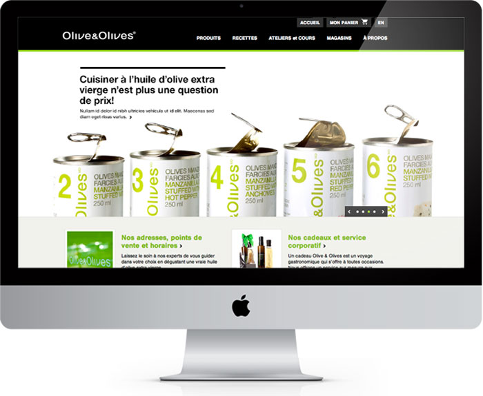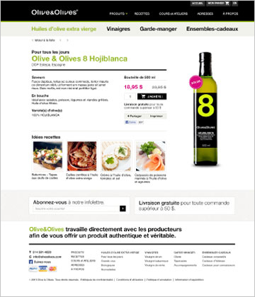 Olive & Olives est une chaîne de magasins de Montréal qui avait besoin d'un site Web et d'un CMS sur mesure pour gérer leur boutique d'achat en ligne.