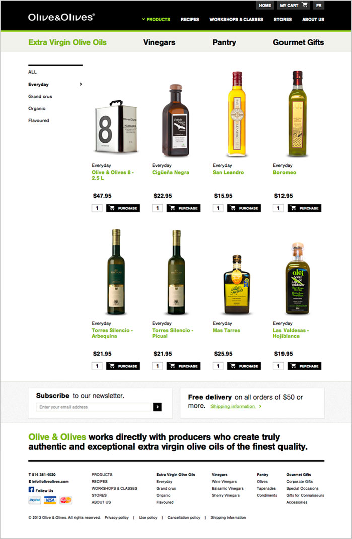 Olive & Olives is a local Montreal company who required a website and custom CMS to manage their online store.